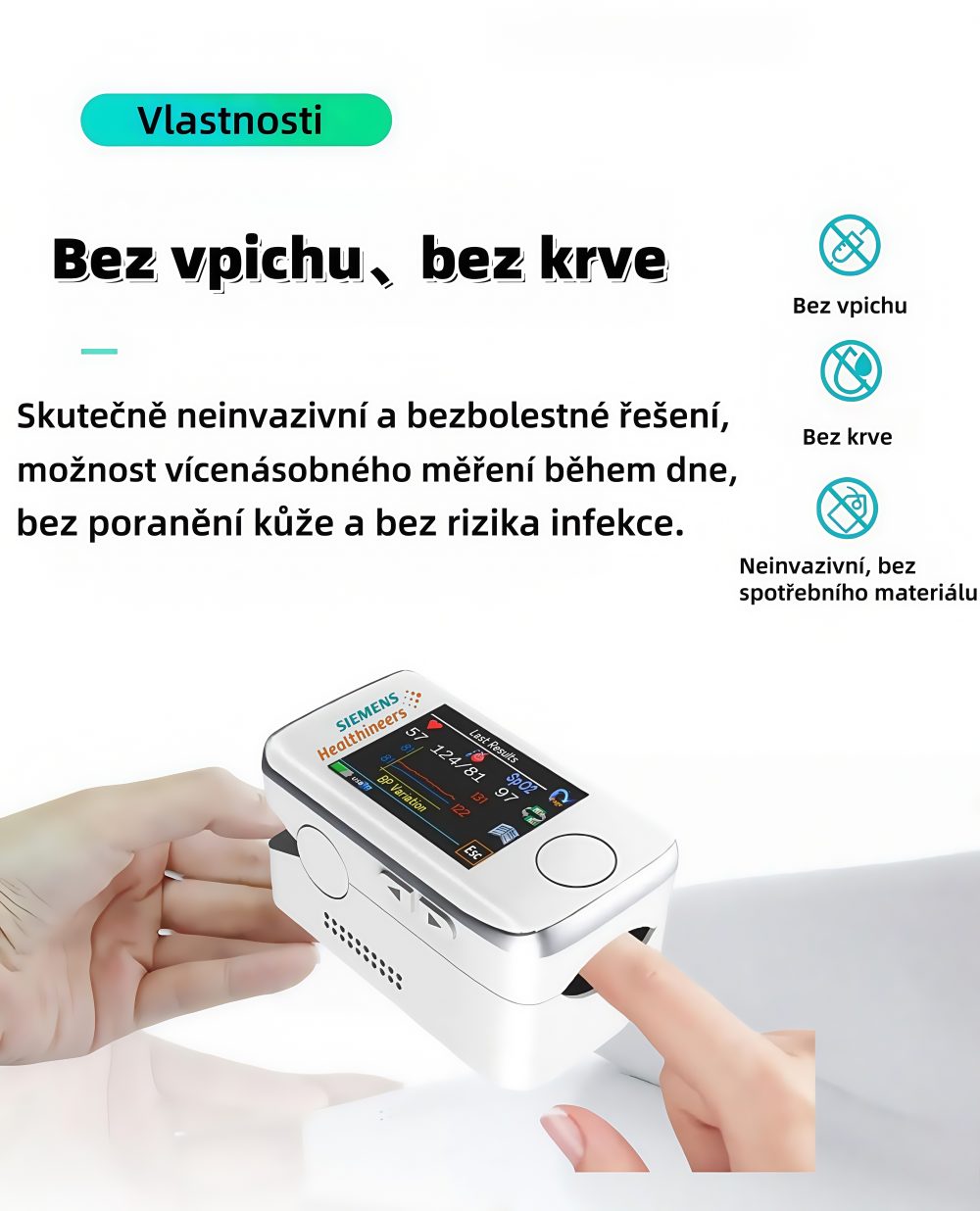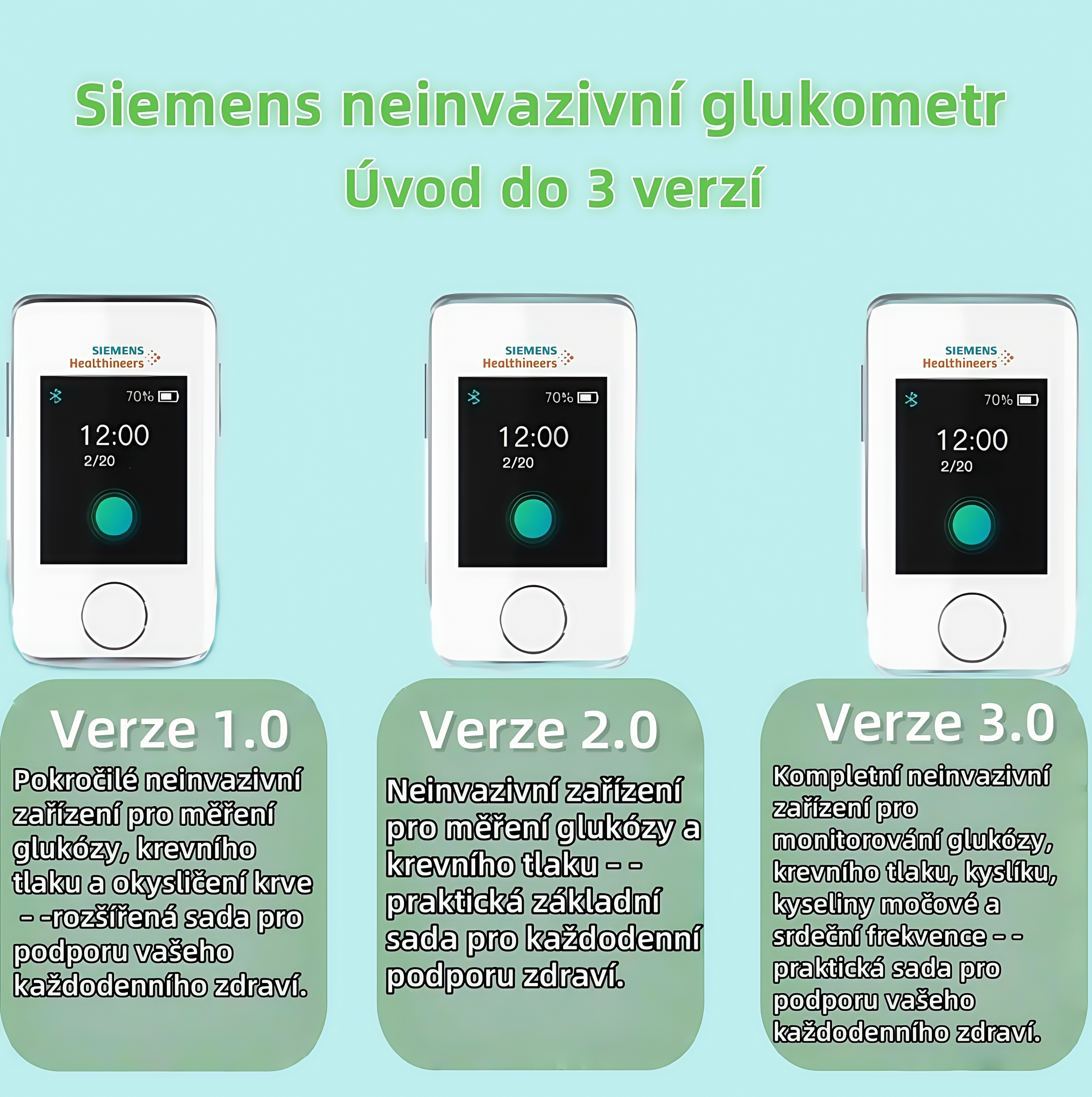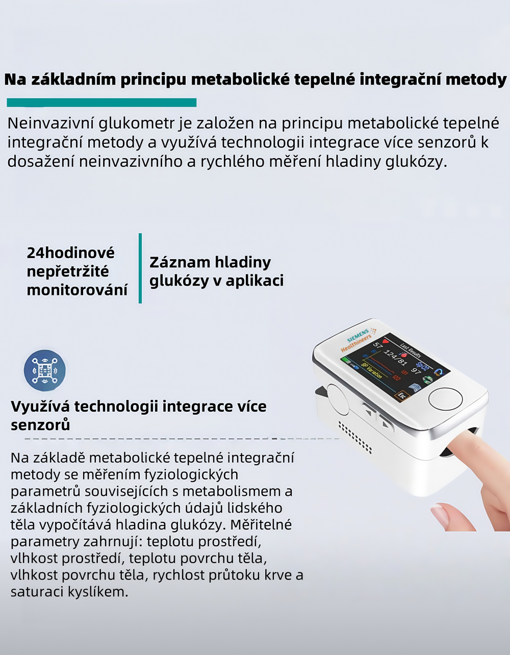 Siemens bezbolestný glukometr – domácí neinvazivní měření bez vpichu, bez krve, s kontinuálním sledováním hladiny cukru v krvi.